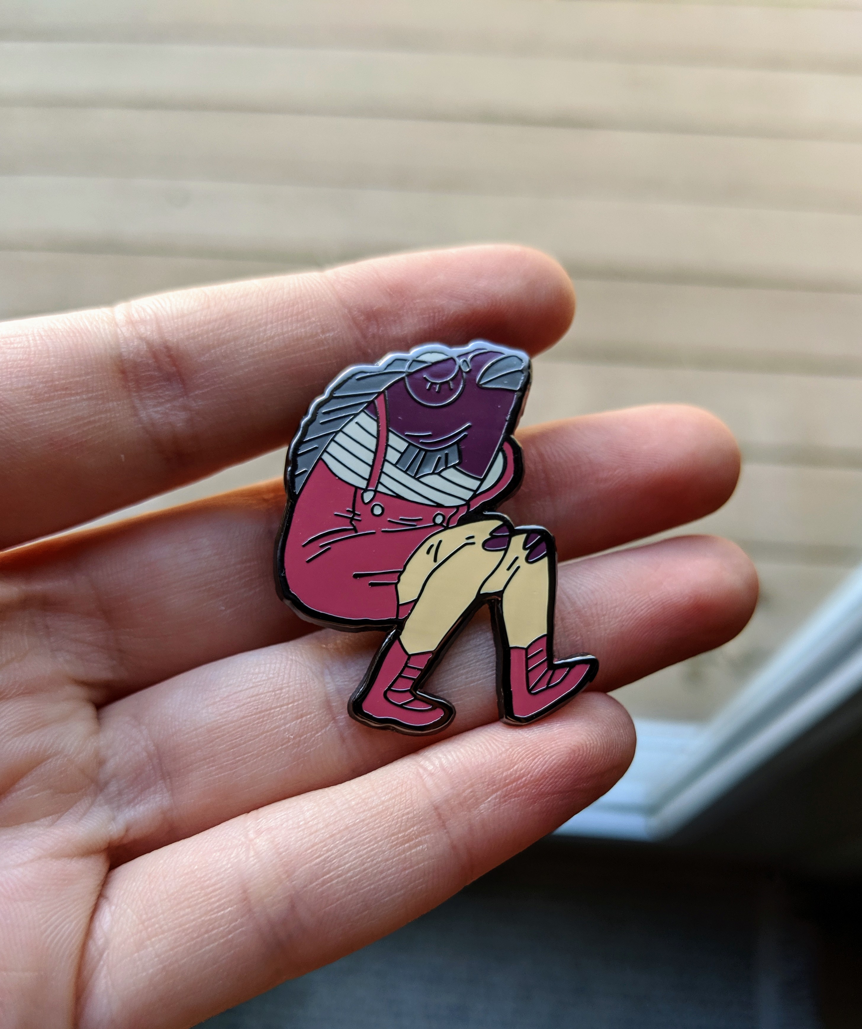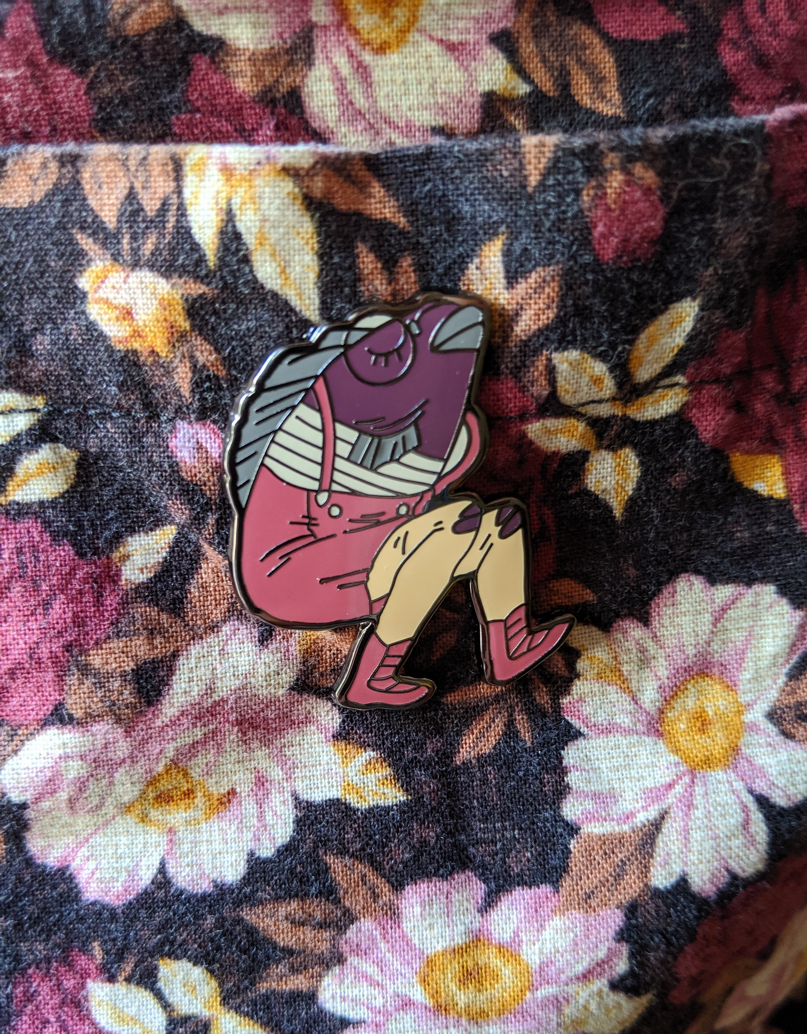 A delightful enamel pin to adorn your person or bag! Roughly 1.3" x 1.4" and made of beautiful hard enamel with black nickel plated outlines.
